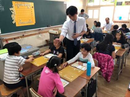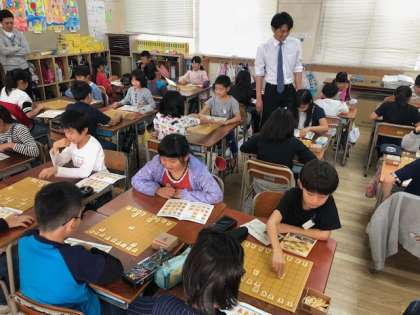 4年生は将棋体験教室を実施しました。日本将棋連盟から講師の先生をお招きして、将棋の楽しさを教えていただきました。