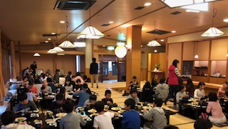 →みなしっかり食べていました。この後、退舎準備に入ります。午前8時45分には宿舎を出て、鳥羽水族館に向かう予定です。