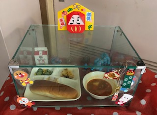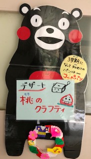 豚肉と野菜のケチャップ煮、きゅうりとコーンのサラダ、桃のクラフティ、パン、牛乳