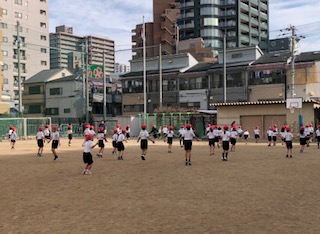 →運動場にて体育をしています。みんなで縄跳びをしました。