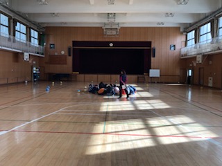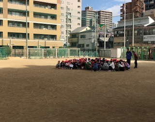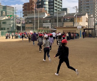 →地震に伴う津波発生を想定しての避難訓練を行いました。(今回は休み時間中を想定)