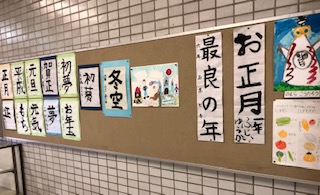 →冬休み中の作成物などを飾っています。