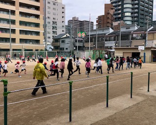 本日より「耐寒かけ足」がスタートしました。初日の今日は1年生と4年生の活動でした。明日からも順次活動が始まっていきます。寒さに負けない身体づくりのためにも頑張って走りましょう!