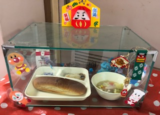 あじのレモンマリネ、スープ煮、固形チーズ、パン、牛乳