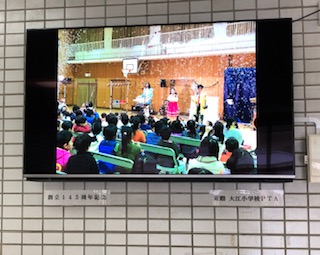 →創立145周年の記念品として、PTAより寄贈していただきました。学校連絡用として、行事予定表や学校活動の写真、各種案内などを表示していきます。大切に使っていきます、ありがとうございました。