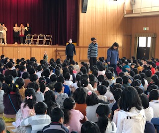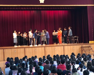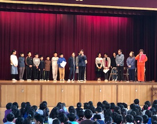 →朝の集会にて、給食集会を行いました。給食調理員の皆さんへの感謝の気持ちを伝え、給食に関する劇をしました。