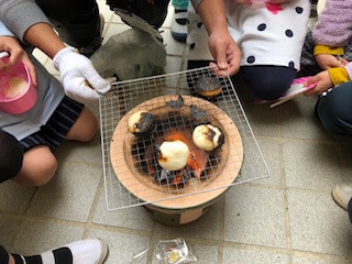 →今日の3、4時間目に3年生が「七輪体験」をしました。昔の道具を使う経験を通して、その時の苦労を知ることができました。今は便利な道具がたくさんあり、何でも手軽に早くできると改めて感じました。七輪でお餅を焼いての発見!苦労したからなのか、いつものお餅より美味しかったと話す児童がたくさんいました。七輪で焼くと美味しく食べることができるのですね。お餅美味しかったですね。