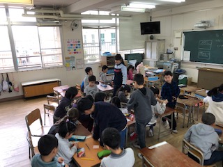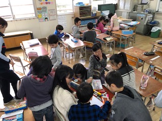 →5時間目に、なかよし班による活動を行いました。今月28日に行われる「お別れなかよし給食」の準備と6年生に送る寄せ書き作成をしました。