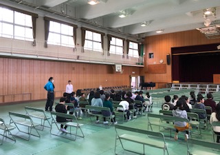 →5年生の児童に協力してもらい、卒業式の会場準備を行いました。椅子机の設置やシート敷き、清掃などを丁寧にしてくれました。お世話になった6年生のために一生懸命に頑張っていました。