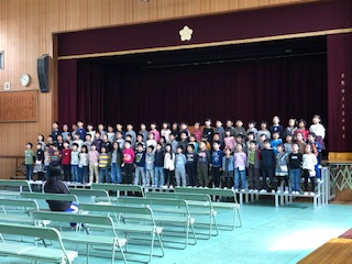 →体育館にて、入学式に行う歓迎の演技の練習をしていました。とても元気な歌声が響き渡っていました。