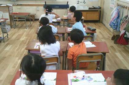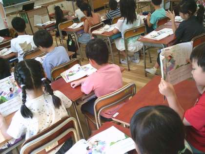 2年生の音楽では、『にじのクレヨン』という曲を振付をつけて歌っていました。歌う子どもたちの表情を見ていると、楽しさが伝わってきました(^ ^)