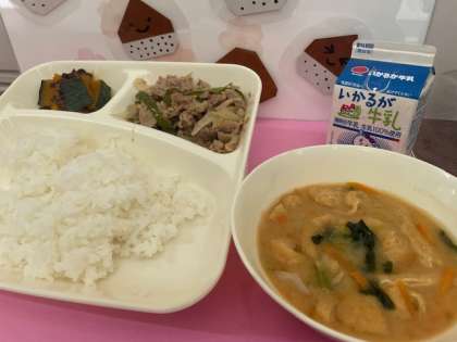 豚肉の甘辛焼き みそ汁 かぼちゃのいとこ煮
