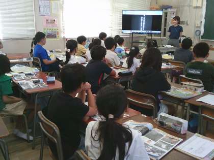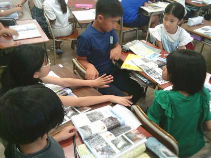 4年生の社会科では『自然災害からいのちを守るために』というテーマで史実をもとに学習を進めました。当時の自然災害による被害状況を伝える動画を、食い入るように見ていました。視聴後は、班の友だちと感想を言い合い、自分たちにできることを考えていました。