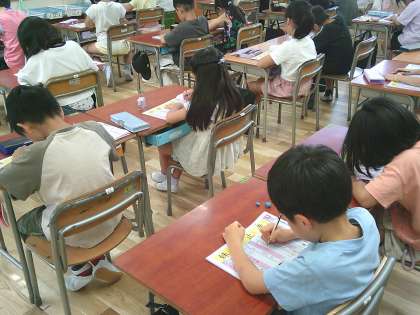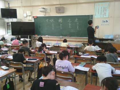 2年生の教室でも漢字の練習をしていました。練習していたのは「走、止、弟、妹」。画数の多い漢字にチャレンジしていました。