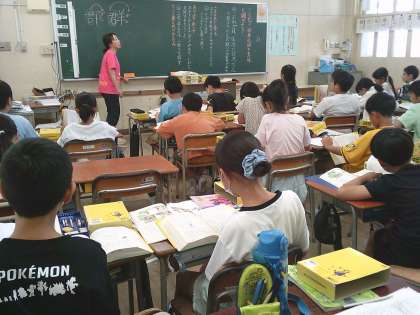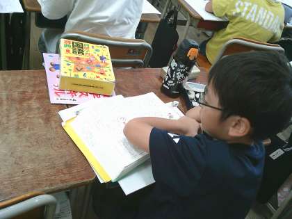 4年生の国語では『ことわざ・故事成語の意味を調べよう』というめあてを持って学習に取り組んでいました。途中、間違いを見つけて、ひらがな一文字の働きに気づいていました。