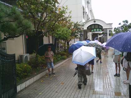 今日の天気予報は、「雨、夜くもり、所により昼過ぎまで雷を伴い激しく降る」です。登校時の気温は25度で、気温は下がっていますが、蒸し暑く、台風15号の影響で雨もしっかり降っています。