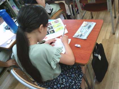 3年生の理科では、生き物新聞を作ろうと、取り組んでいました。タイトルは「サイエンスわくわく」。自分で調べたり発見したりした虫のことをネタに新聞を作っていくので、その名の通り、作りながらわくわくしていくんでしょうね(^ ^)