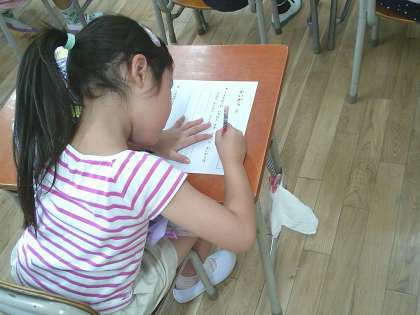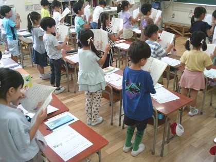 1年の国語では『かいがら』という物語を通して学習をしていますが、今日は、うさぎの子が言った言葉を考えたり、次の場面を想像したりすることにチャレンジしました。