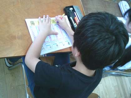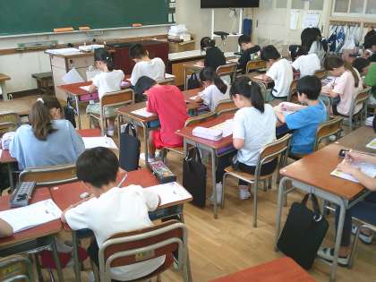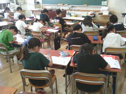 3年生の教室をのぞいてみると、とても静かに集中して漢字の練習に取り組んでいるところでした。