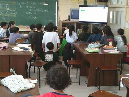今日の音楽で、6年生は有名ボーカルグループの曲『足跡』の歌唱にチャレンジしていました。