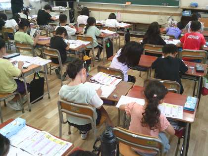 2年生の教室をのぞくと「絵」「広」「図」の新出漢字の練習に取り組んでいました。「ていねいに書けていますか」と尋ねてきた子のノートを見ると、とても丁寧に書けていました(^ ^)