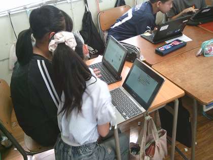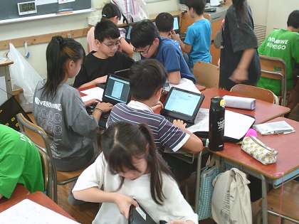 調べたことを他の班のみんな伝えるために、言葉を選んでいました。