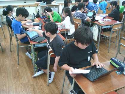 6年生の総合では、第2次世界大戦中の広島、長崎、沖縄について、班ごとに調べる出来事を分担して調べています。