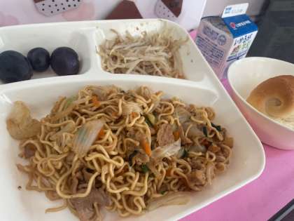 オイスターソース焼きそば もやしの中華あえ ぶどう(巨峰)