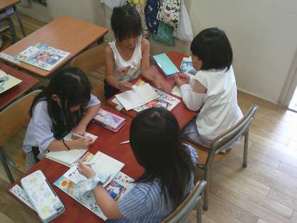 1年生の生活では、むしのすみかについて、『どんなすみかにするかかんがえよう』と取り組みました。それぞれ担当する生き物チームで意見を出し合い、むしが生活するうえで必要なものを考えていました。