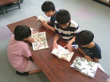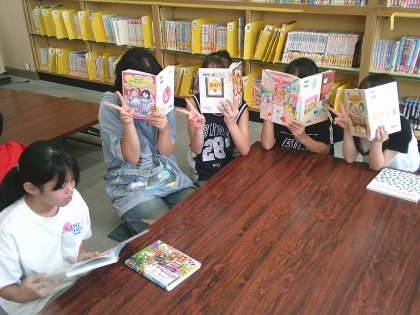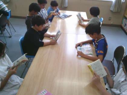 6年生の図書の時間をのぞいて見ると、スポーツにまつわる話や料理に関する本、科学の不思議や面白いお話などなど、それぞれが、本に親しんでいました。