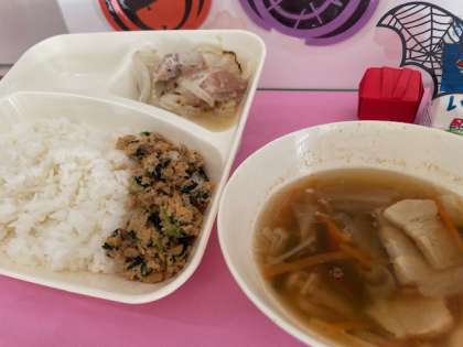 鶏肉のゆず塩焼き ソーキ汁 ツナ大豆そぼろ