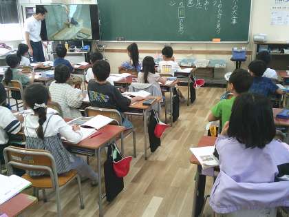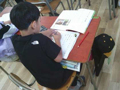 2年生の国語では、「ビーバーの大工事」という説明文を学習しています。今日は、ビーバーの歯の鋭さをたとえた大工道具である『のみ』が話題となり、動画でのみを確認していました。のみのような歯と聞いて、改めて驚いていました(^ ^)