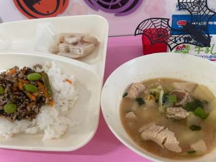 もずくと豚ひき肉のジューシー(具) じゃがいものみそ汁 焼きれんこん