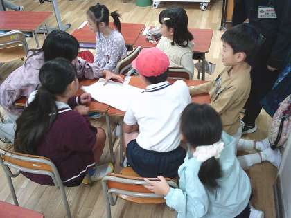 今日のなかよし班活動は、なかよし班の教室でジェスチャーゲームを行いました。