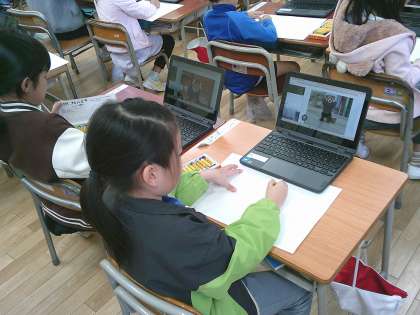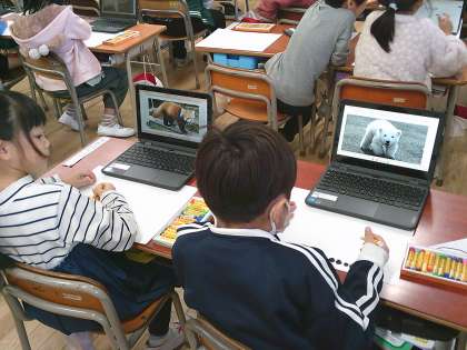 1年生の図工では、天王寺動物園で出会った動物を描いています。今日は『ろ組』のみんなの様子です。