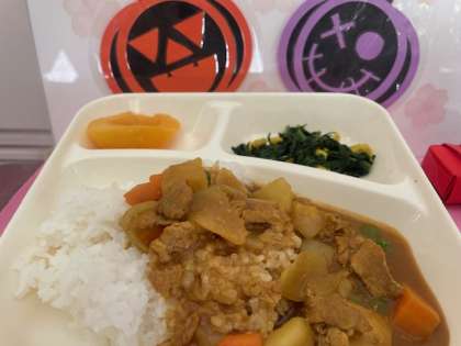 ポークカレーライス ほうれんそうのソテー 黄桃(缶)