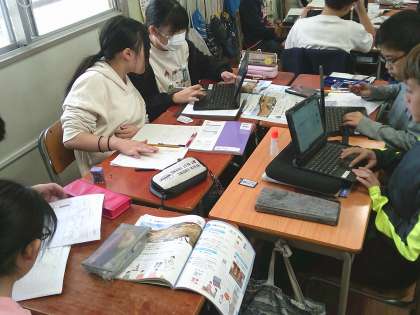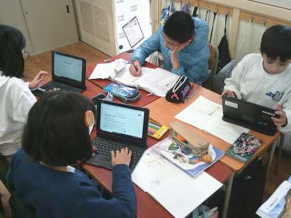 6年生の理科では、『地層がしまもように見えるのはなぜだろう』を課題に、その理由を調べていきました。ボーリング調査をした試料の特徴から下層にあったものか中層にあったものなのかを考えていました。