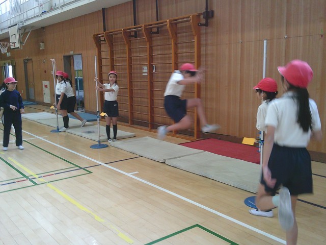 4年生の体育では、高跳びと走り幅跳びの練習をしました。特に、走り幅跳びでは、踏み切る足と踏み切る位置がポイント。