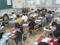 1年生の図書の時間をのぞいてみました。すると、自分のお気に入りの本をしょうかいすることにチャレンジしていました。