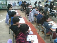 1年生の教室をのぞいてみると、3学期にがんばることを考えて書いていました。