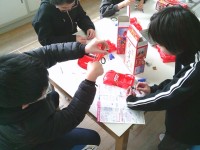 5年生の家庭科では、ミシンの使い方を学習していますが、今日は練習布を縫ってみることにチャレンジしました。