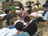 まずは教科書にある作ったお話を知っていきます。『花さかじいさん』や『ももたろう』など、子どもたちも知っている物語を思い浮かべます。主人公がどのようなことをするのかを考えてお話を作っていきます。