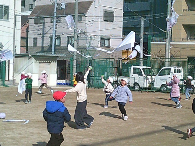 高くあがると、「見て見て!あんなに高くあがったよ!」「ふわふわ浮いてる~!」と、あちこちで歓声があがっていました(^ ^)
