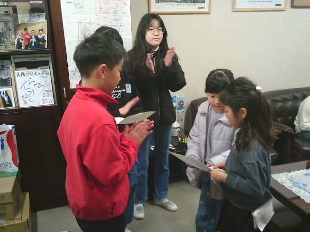 今朝の児童朝会では、はじめに図画の表彰の紹介のあと、校長先生からは、先週3月13日に行われた天王寺中学校の卒業式の模様、ふくらみはじめた桜のつぼみ、交通事故に気をつけて、と、短く3つのお話がありました。