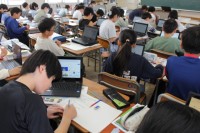 5年生図工のアボリジニアートです。動物や建物、船など、描きたいものを学習者用端末で検索し、下描きをしています。出来上がりがとても楽しみです。