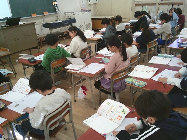 2年生の国語では、『あなのやくわり』のまとめの学習をしていました。友だちの考えて書いたことを先生が紹介し、こんなことが書けるようになったと成長ぶりを確認し合っていました(^ ^)