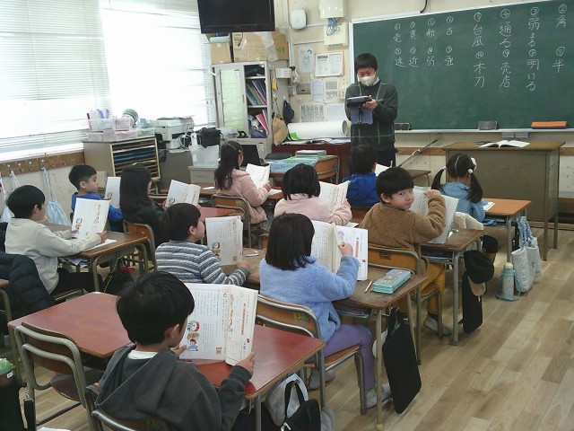 2年生の教室をのぞいてみると、新出漢字の練習をしていました。