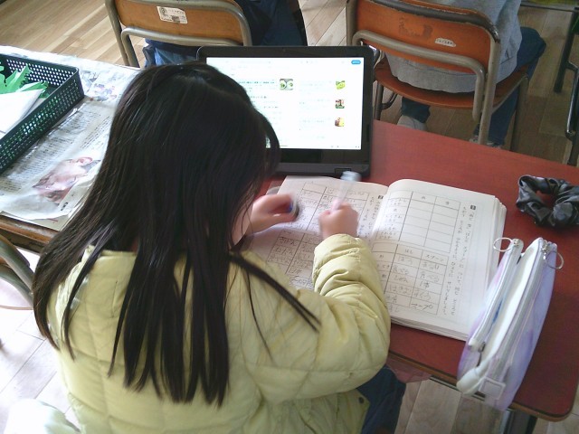 2年生の教室をのぞいてみると、新出漢字の練習をしていました。