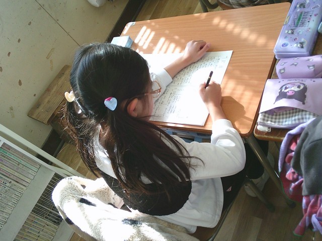 新しく習った漢字を使って文を考え、送り仮名を確かめていました。