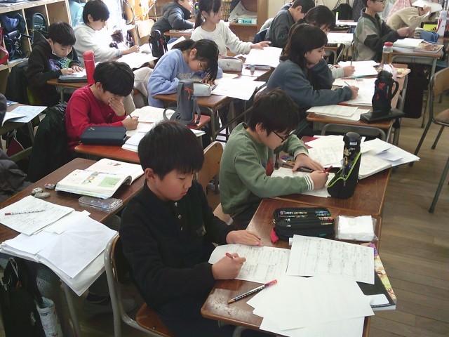 4年生の国語では、グループで考えたアンケートについて、回答していました。アンケートがどのような内容かを見ていました。「している家のお手伝い」「寝る前にしないでおこうと思っていることは?」「勉強の仕方」などでした。さあ実態は(^ ^)